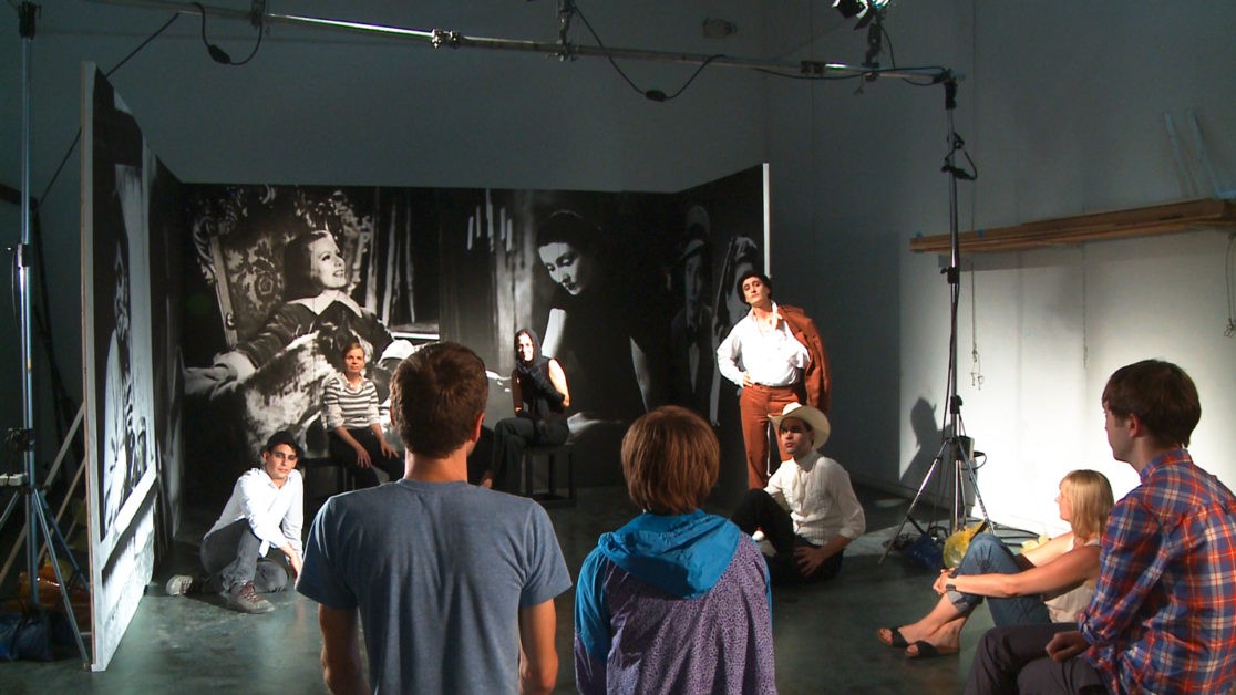 »Dad Dracula is Dead« is the first instalment of a three-part video project that refers to certain stereotypes of character presentation in European and US film and TV history. It looks back to the cinema of the twenties and thirties, a time of transition not only from silent film to talkies but also for an increasingly regimented film industry. Although censorship codes were relaxed after World War I, there was a concurrent tendency to establish new control structures (such as the Motion Picture Production Code of 1930) to accompany the birth of film as a mass medium. Dialogue from the movies of the time, including Different from the Others, The Soilers, Girls in Uniform, Queen Christina, Sylvia Scarlett and Dracula’s Daughter’ is repeated in Dad Dracula is Dead, performing a loop within this history. The characters from the films adopt the prevailing norms of living in that society, visible through their connections to and dependencies on each other. When amateur actresses and actors apply the effort that it takes to perform another identity and repeat these conventions, the act of appropriation is kept visible. This re-enactment of ways of living makes any obvious separation between the natural and the staged difficult. The norm has to be repeated, in order to be achieved.