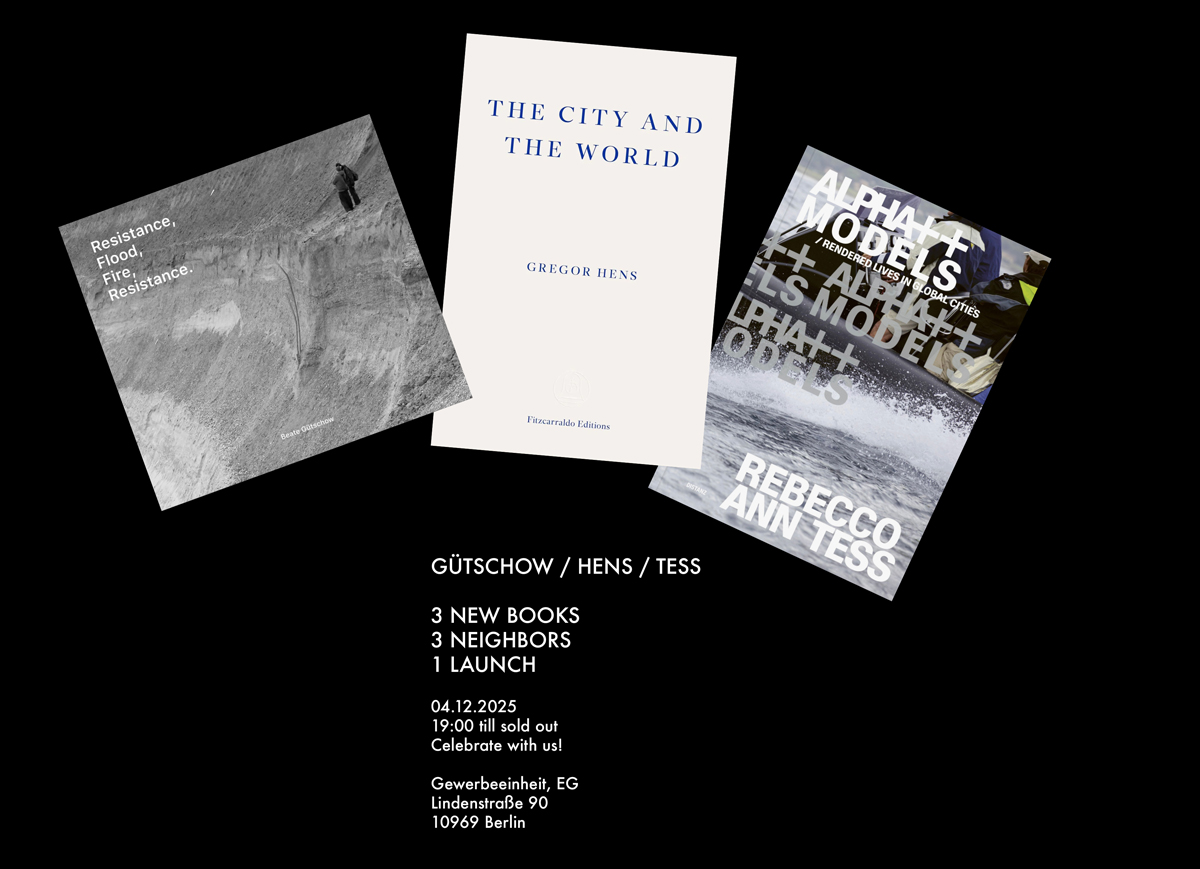 The photography monograph »Alpha++ Models / rendered lives in global cities« portrays the aesthetic of neoliberalism and its political repercussions in the global economic centers amid the jarring dynamic of gleaming tower façades, vast construction sites, cookie-cutter greenspace designs, and neighborhoods threatened by impending demolition and gentrification. The extensive plate section is complemented by essays by Gregor Hens, Carlos Kong, Grégory Salle, Anna Voswinckel, and InYoung Yeo that offer an introduction to Tess’s practice.